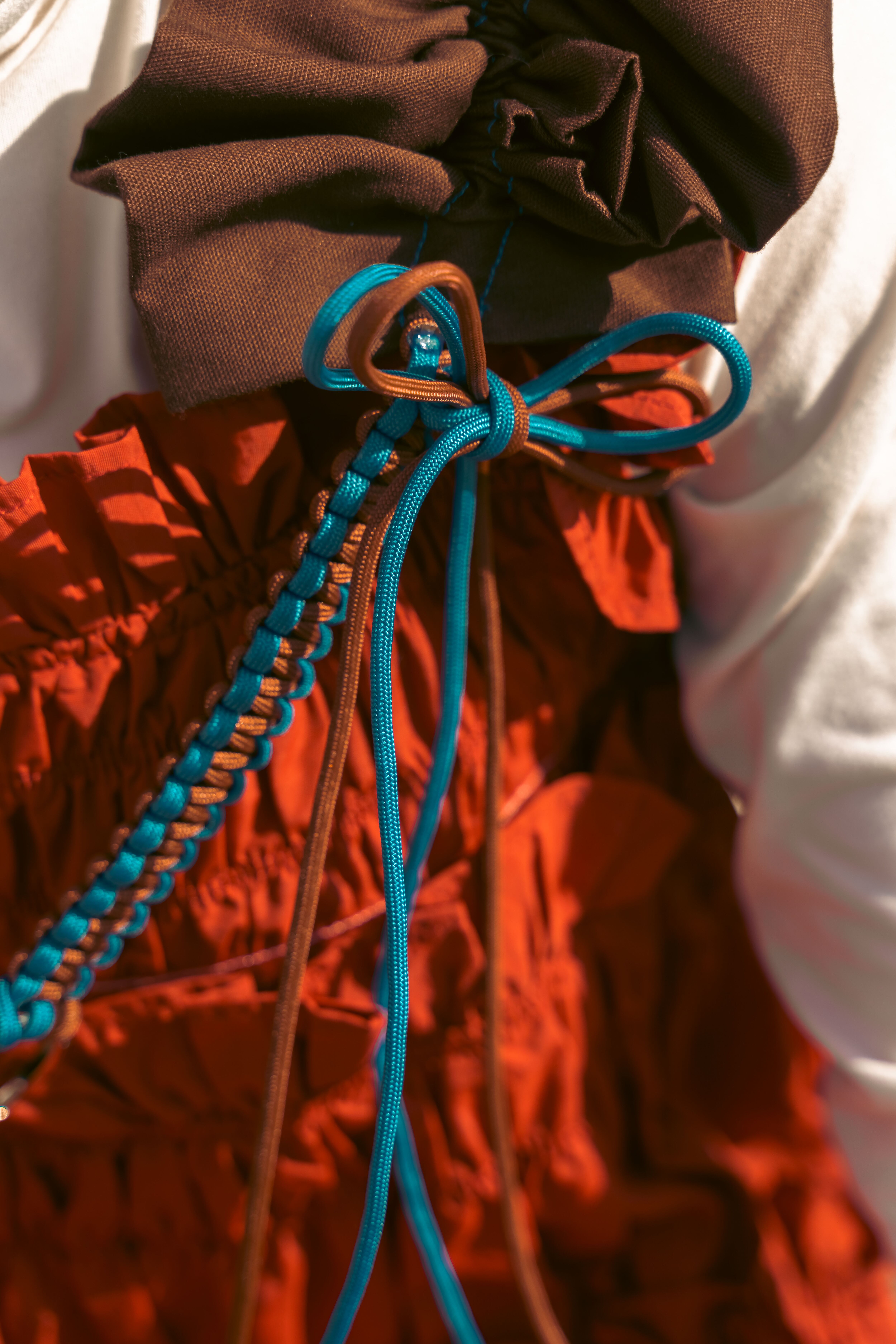 bi-tone frill strap Brown×Blue