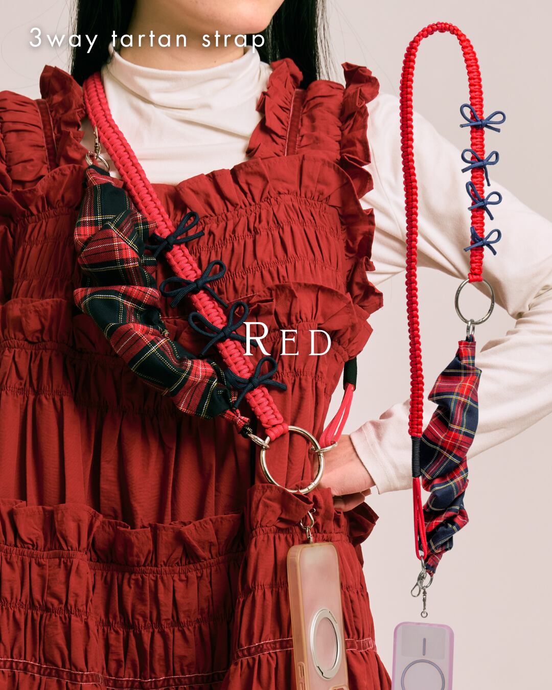 3way tartan strap Red