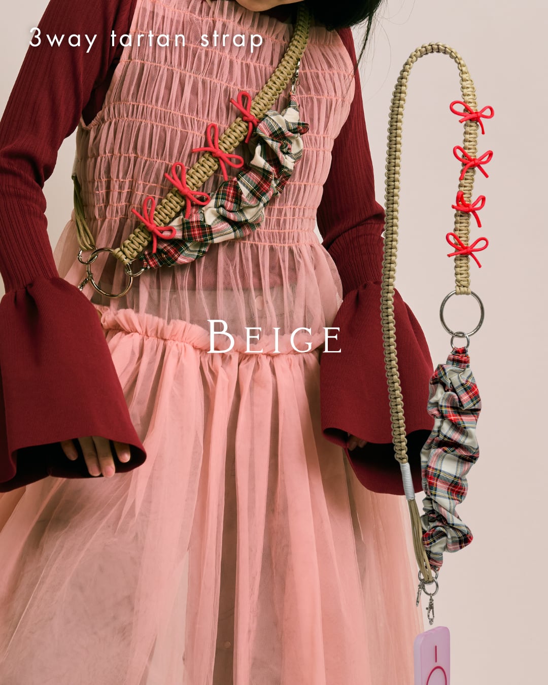 3way tartan strap Beige