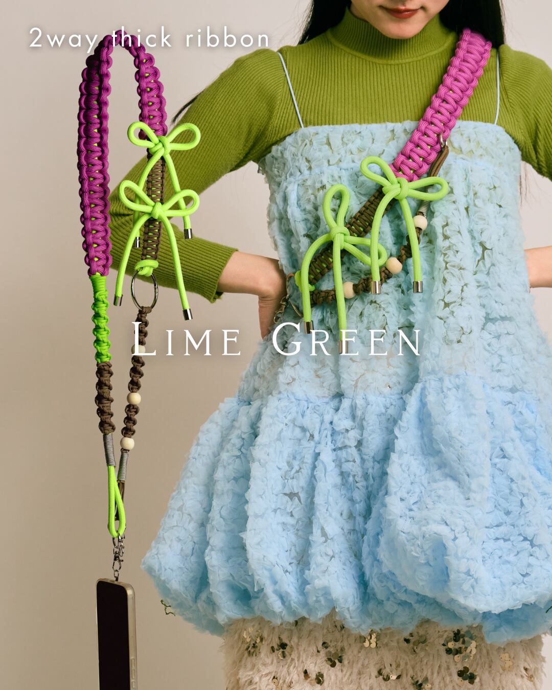 2way thick ribbon strap Lime Green