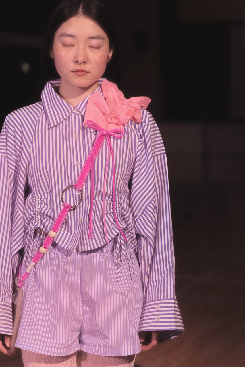 バイカラーのコードと、肩部分のくしゅっとした