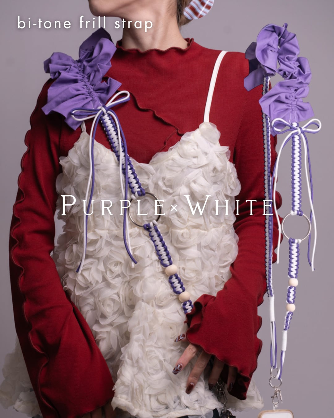 bi-tone frill strap Purple×White