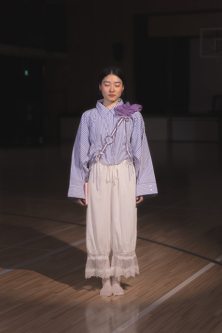 バイカラーのコードと、肩部分のくしゅっとした