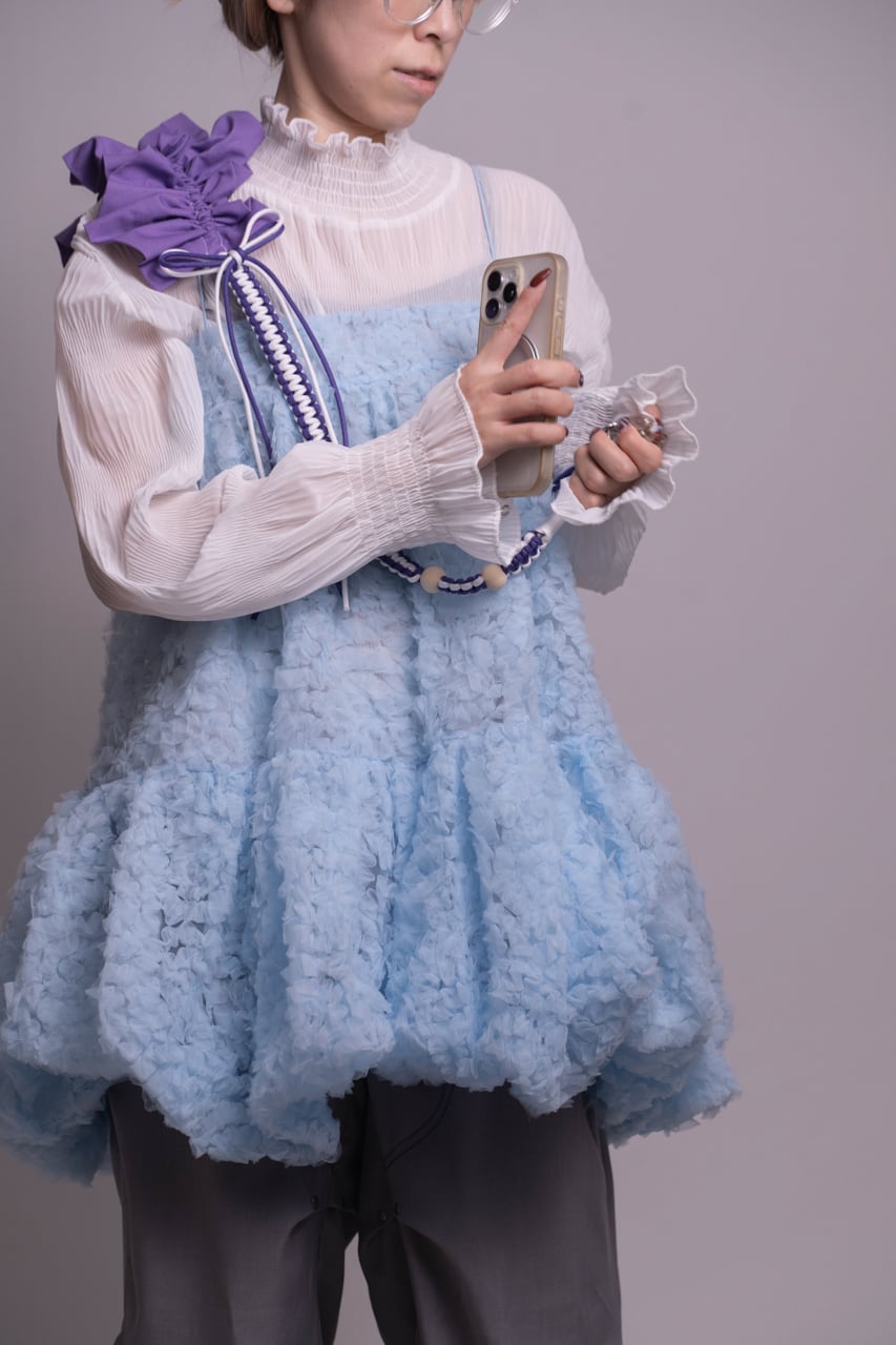 肩にかけた時にやわらかく表情が生まれるフリルと